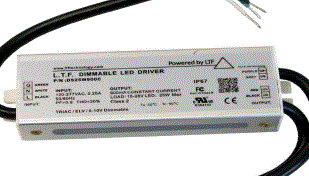 DS96W24VBR1UD-3002 LTF 96W LED DRIVER CONSTANT VOLTAGE 120V-277VAC-IN 4000mA 24VDC/OUT ELV TRIAC 0-10V & 1-10V DIMMING BR1 FORM FACTOR PF:>0.90 IP67 T24/COMPLIANT L7.64" W 2.25" H 1.46" L.T.F. |
