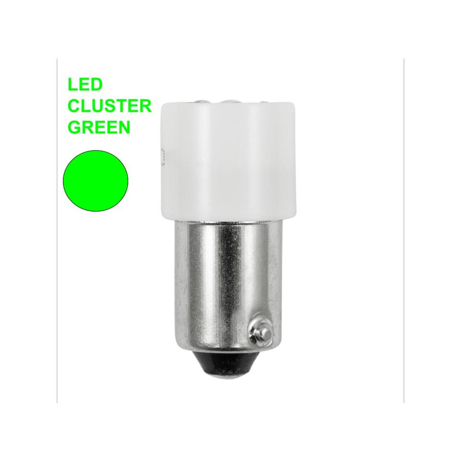 1.20W LED GREEN 7-CLUSTER T3-1/4 BA9S-MINIATURE BAYONET BASE 10mA 120V 120DEG VIEWING ANGLE 7.85LM 100000HRS L 0.94" D 0.39"