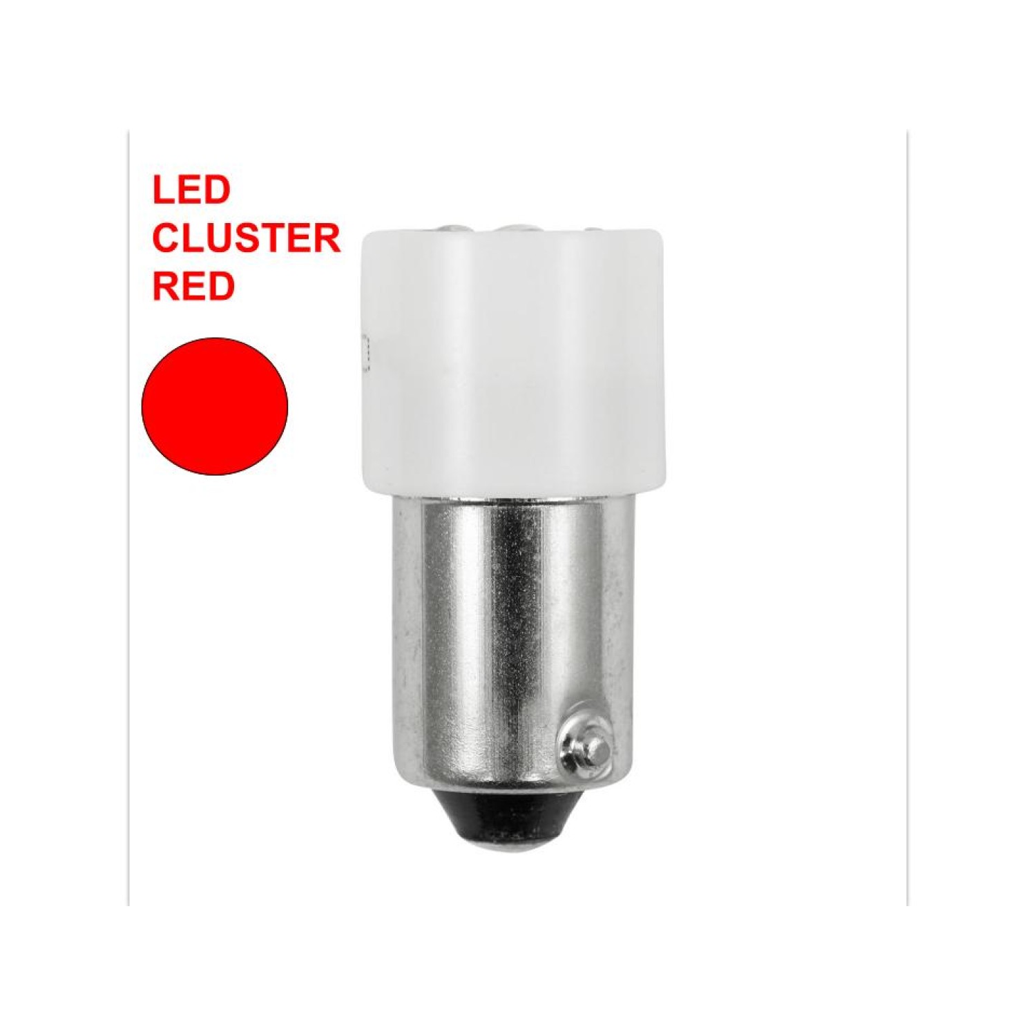 1.20W LED RED 7-CLUSTER T3-1/4 BA9S-MINIATURE BAYONET BASE 10mA 120V 120DEG VIEWING ANGLE 7.85LM 100000HRS L 0.94" D 0.39"