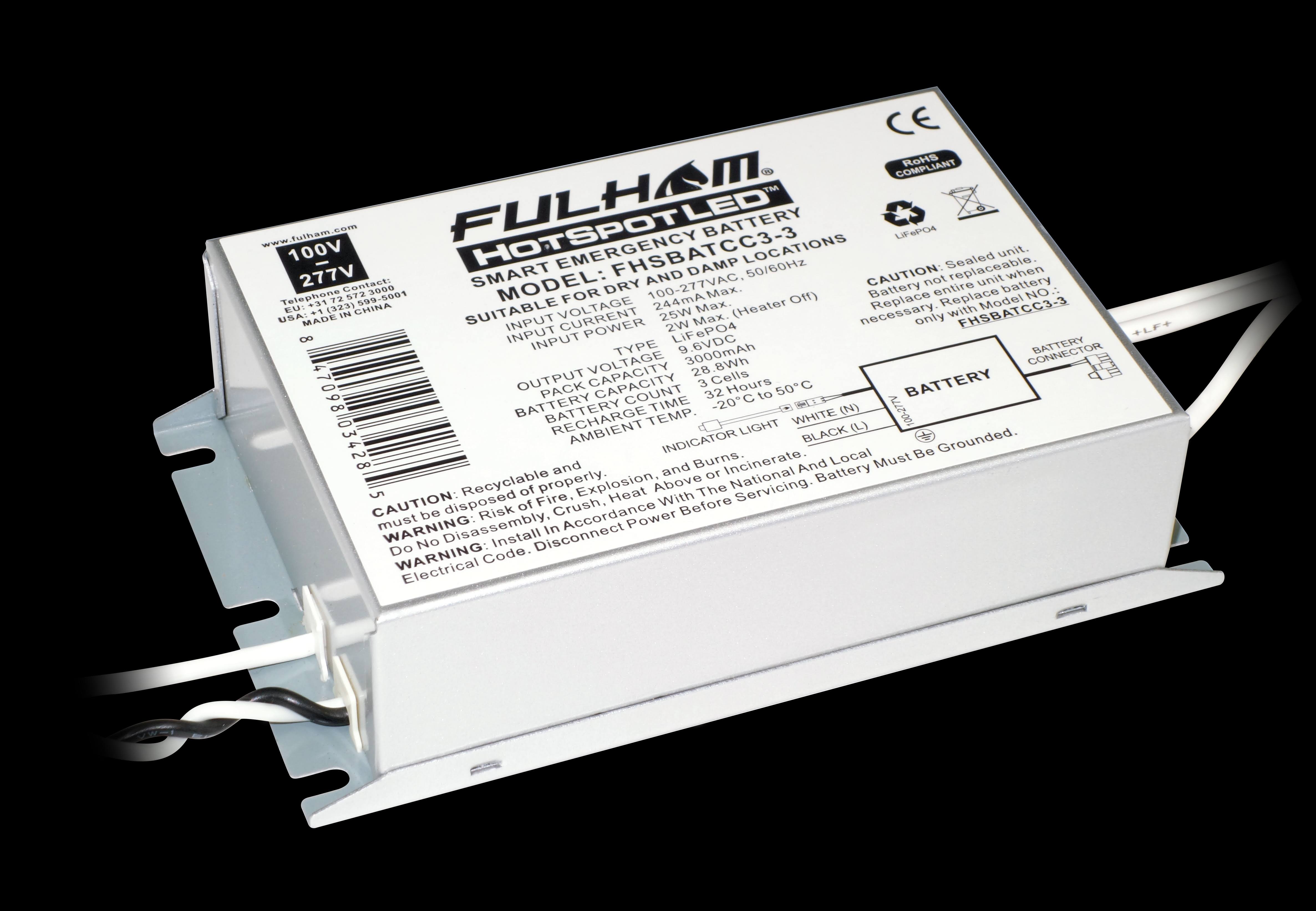 25W 100 - 277V 3AH FHS2 COLD RATED BATTERY PACK DRY AND DAMP LOCATION RATED FULHAM FOR USE WITH FHS2-UNV-36L FHS2-UNV-56S
