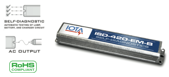 ISD-80 IOTA SELF DIAGNOSTIC FLUORESCENT EMERGENCY BALLAST 3.5W 110-277V FOR USE WITH MOST 2`-8` SINGLE PIN, BIPIN T8 & T12 HO OR VHO FLUORESCENT LAMPS AND 2'-4' 28W- 54W T5 LAMPS 90-MIN RUN TIME 13.3"L 2.38"W 1.5"H 3.6LBS *NOT T20 COMPLIANT* |