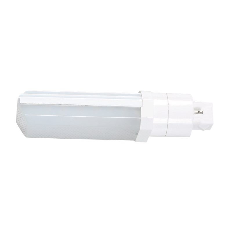 8W LED CFL RETROFIT G24D-2 PIN BASE =26W/32W/42W G24D/G24Q CFL 120V-277V TYPE B-BALLAST BYPASS 4000K CRI>83 950LM HORIZONTAL 120D BEAM ANGLE 50000HR L 5.6" D 1.61"