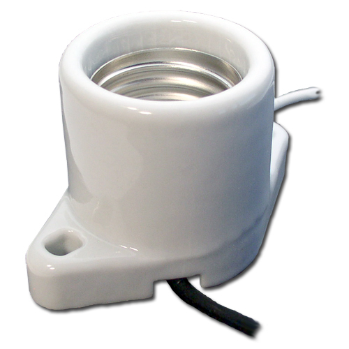MEDIUM BASE SOCKET E26 E27 W/ 2 HOLE FLANGE CLEATED PORCELAIN SOCKET W/ 9.0" LEADS