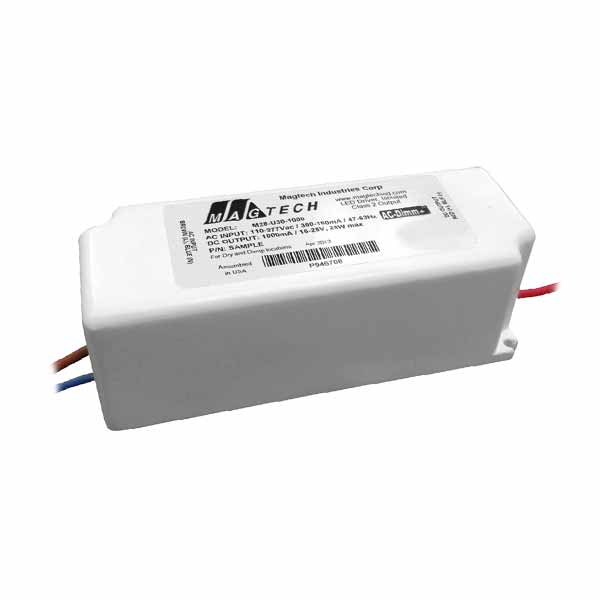 MAGTECH 30W 600MA CC-CONSTANT CURRENT LED DRIVER 110-277VAC/IN 40-54VDC/OUT CLASS 2 SINGLE OUTPUT DIMMABLE 100000HR 3.46"L X 1.61"W X 1.14"H 0.50 LB EA