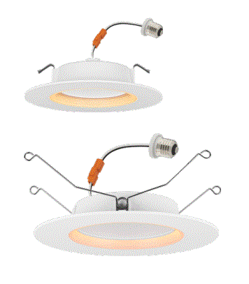 8W LED 5"/6" DOWNLIGHT W/E26-MEDIUM SCREW BASE 120VAC CCT-SELECTABLE 2700K 3000K 3500K 4000K 5000K CRI>90 700LM TRIAC/PHASE CUT DIMMING NIGHTLIGHT FEATURE 35000HRS WHITE FINISH DAMP LOCATION/ENERGY STAR RATED T20/COMPLIANT D 7.28" H 1.50" 0.68LBS