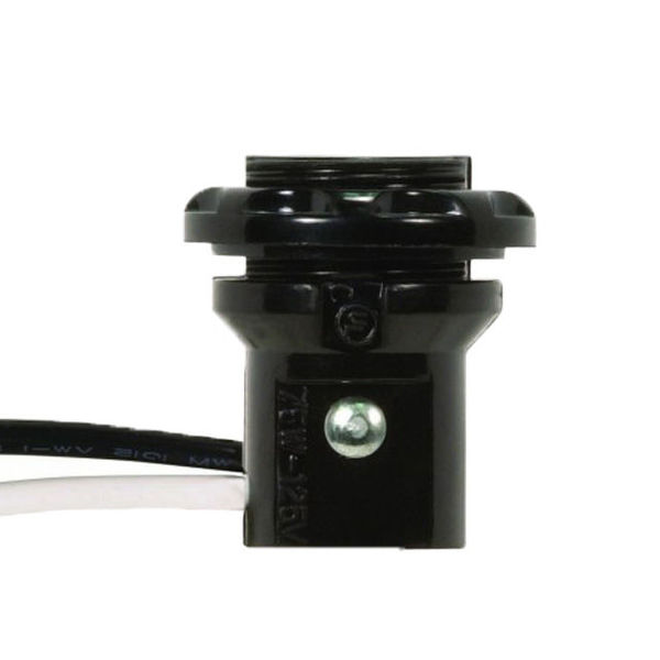 75W 125V E12/CANDELABRA THREADED SOCKET W/PHENOLIC RING BLACK FINISH & LEADS H 1.25" D 0.75"