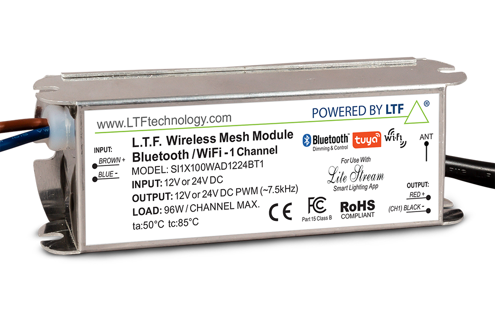 96W PER CHANNEL WIRELESS MESH MODEULE BLUETOOTH WIFI 12V TO 24V DUAL CHANNEL C2 FORM FACTOR ALUMINUM CASE 4.685" L 1.575" W .965" H LTF