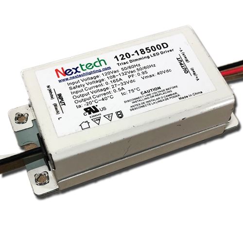 120-15420D NEXTECH CC-CONSTANT CURRENT 15W (108-132VAC) 120VAC/IN, 22-36VDC/OUT CC 420MA, TRIAC DIMMING IP67 RATED W/MOUNTING FEET 3.42"L X 1.57"W X 0.90"H 0.50LBS EA |
