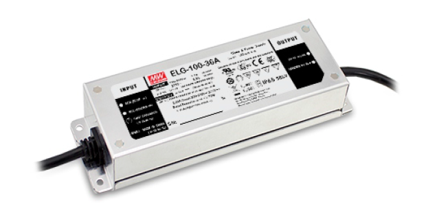 ELG-100-36 100W CC +CV LED DRIVER 100-305VAC 18-36VDC IN CC MODE 36V FOR CV MODE 2660mA NON DIMMING INDOOR AND OUTDOOR RATED METAL HOUSING |