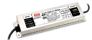 ELG-240-C1050A-3Y 240W CC LED DRIVER 100-305VAC INPUT 114-228VDC OUTPUT 525-1050mA VIA BUILT IN POTENTIOMETER 3 WIRE INPUT NON DIMMING |