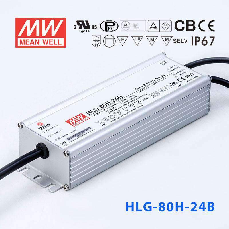 HLG-80H-24AB 80W MEAN WELL CV LED DRIVER 90-305VAC-IN 24VDC-OUT 3400MA IO ADJUSTABLE THROUGH BUILT-IN POTENTIOMETER & 3 IN 1 DIMMING (1-10DC, 10V PWM SIGNAL & REISTANCE) |
