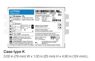 L3DA4U1UKN-EA033 LUTRON 40W CC CONSTANT CURRENT LED DRIVER 120-277V-IN 30-54V-OUT 330mA CCR DIMMING COMPACT CASE, NON-STUDDED 4.2"L 3.0"W 1.0"H |