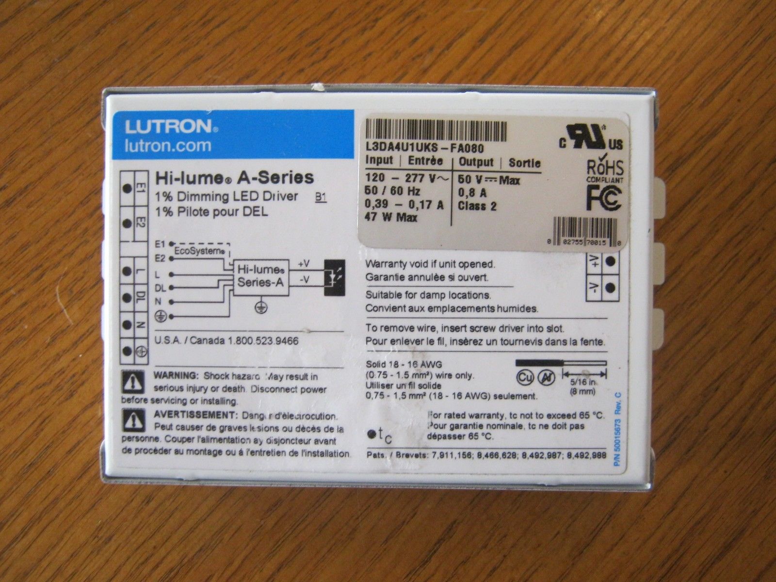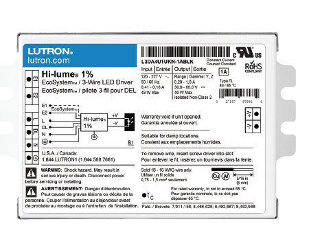 L3DA4U1UKS-FA081 LUTRON 40W CC CONSTANT CURRENT LED DRIVER 120-277V-IN 30-54V-OUT 810MA PWM DIMMING **NON-CANCELABLE/ |