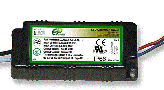 LD40W230-54-C0700-TL EPTRONICS 40W CC CONSTANT CURRENT LED DRIVER 230VAC-IN 34-54VDC-OUT 700MA DIMMABLE TRIAC OR ELV PHASE DIMMING IP66 3.78"L 2.8"W 1.26"H |
