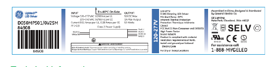LF1048-36-C0950 48W LED DRIVER CONSTANT CURRENT CC 120-277VAC/IN 950mA 36VDC/OUT 0-10V DIMMING DAMP RATED L 5.59" W 1.85" H 1.26" |