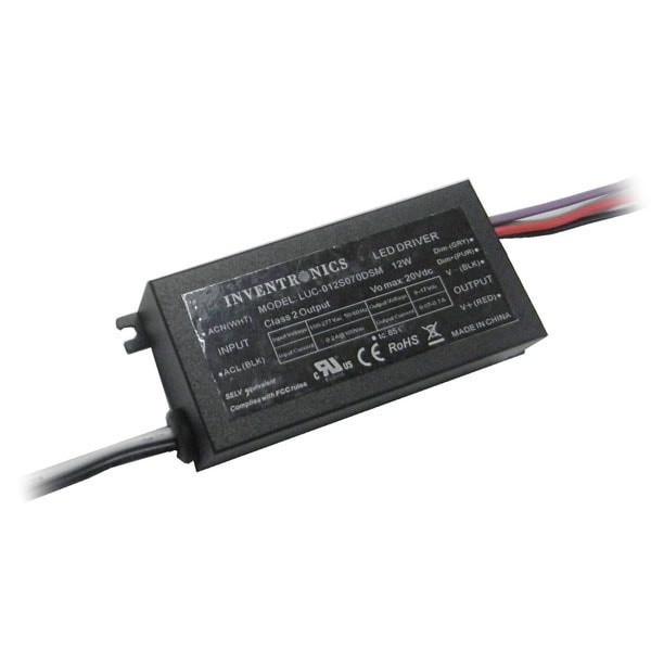 LUC-012S035DSP 12W LED DRIVER CONSTANT CURRENT CC 90-305VAC-IN 17-34VDC-OUT 12W MAX 350mA DIMMABLE 0-10V COMPATIBLE WITH PASSIVE DIMMERS IP20 RATED INDOOR USE ONLY L 4.13" W 1.65" H 1.22" |