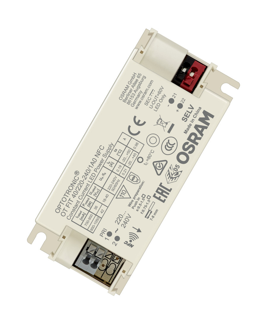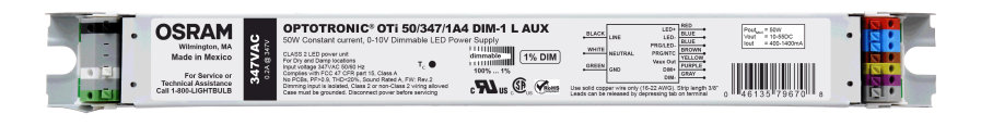 OT40/120-277/1A0/4DIML/T2/E CC 40W OSRAM 120-277V-IN 15-56V-OUT 1050MA DIMMABLE LED DRIVER |