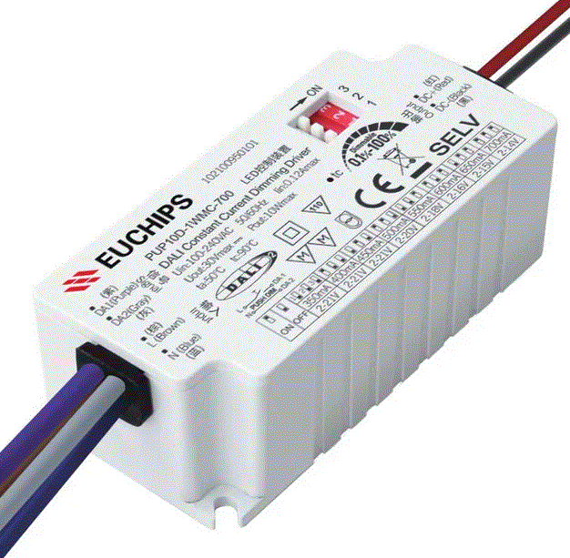 PUP10D-1WMC-700 10W LED DRIVER CC-CONSTANT CURRENT 100V-240VAC/IN 350mA-700mA CONTROLLED VIA DIP SWITCH IN 50mA INCREMENTS DEFAULT=350mA 2V-21VDC/OUT PF:>0.94 1-CHANNEL DALI/TOUCH-PUSH DIM 0.1%-100% TO OFF 50000HRS IP20 SIDE WIRE LEADS L 2.95" W 1.38" H 1.04" **MARKETPLACE** |