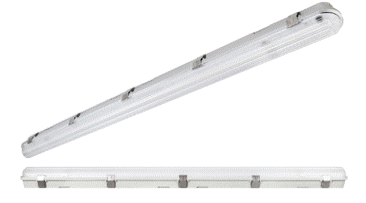 VAPOR2B/040UNVD840/48EC/GR/D LED FIXTURE 40W 120-277V FIXTURE - VAPOR TIGHT 4000K 80CRI 5,300L W/CLEAR LENS,4,600L W/DIFFUSED LENS 48" DIMMABLE IP66 84,000HR |