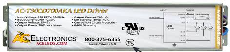 AC-T30CD700AKA 3-CHANNEL CC CONSTANT CURRENT LED DRIVER 30W-PER CHANNEL 120-277VAC-IN 25-42VDC-OUT 700MA DIMMABLE 0-10V PF>0.90 9.5"L 2.4"W 1.46"H |