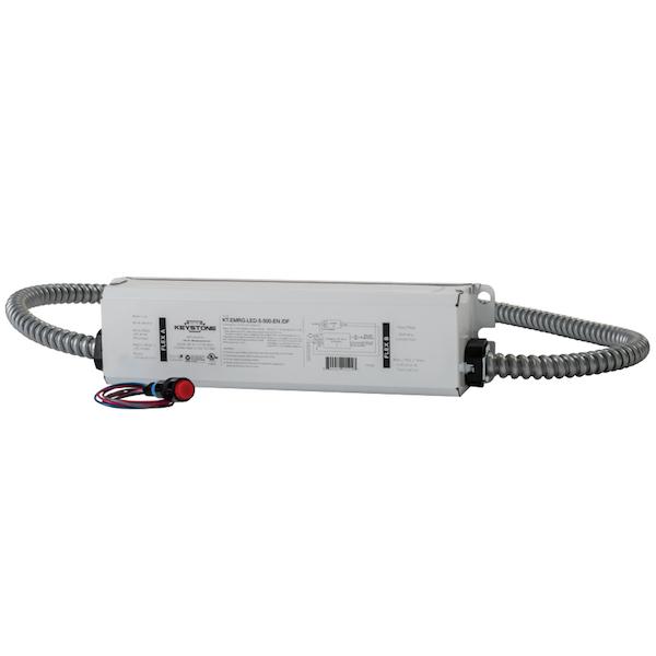 KT-EMRG-LED-12LT-1200-EN/DF 12W CONSTANT WATTAGE LED EMERGENCY BACK-UP 120-277VAC-IN 2060VDC-OUT 600mA-206mA DUAL FLEX CONDUIT 12.5"L 2.3"W 1.3"H |