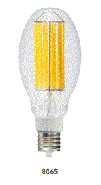 LED-8065M40 85W LED CLEAR FILAMENT POST TOP EX39-EXCLUSIONARY MOGUL BASE =400W 120V 208V 240V 277V TYPE B-BALLAST BYPASS 4000K CRI>80+ 15725LM 4kA SURGE PROTECTION 50000HRS ENCLOSED FIXTURE RATED L 11.50" D 4.80" 1.70LBS |