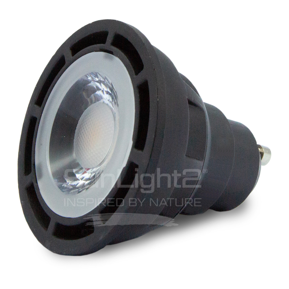 GU10U7W3018KWD60B 7W LED MR16 GU10 BI-PIN BASE 220V 1800K-3000K DIM TO WARM 480LM CRI 97+ R9 95+ WIDE FLOOD 60DEG PHASE DIMMABLE 100% - <3% BLACK FINISH 30000HRS 3 YEARS / 25000HRS WARRANTY NO FLICKER LOW BLUE EMMISION FOR EYE HEALTH ZERO ULTRAVIOLET EMMISION WON'T FADE COLORS OUTDOOR RATED TITLE 24 JA8 COMPLIANT 2" MOL 2.1" DIA |