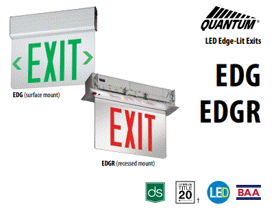 EDGR-1-RMR-EL-SD-M4 RECESSED LED EDGE-LIT EXIT SIGN SINGLE FACE, RED ON MIRROR, NICKEL-CADMIUM BATTERY, SELF-DIAGNOSTICS 120/277V 13.0"L 1.8"D 8.0"H 6.8 LBS |