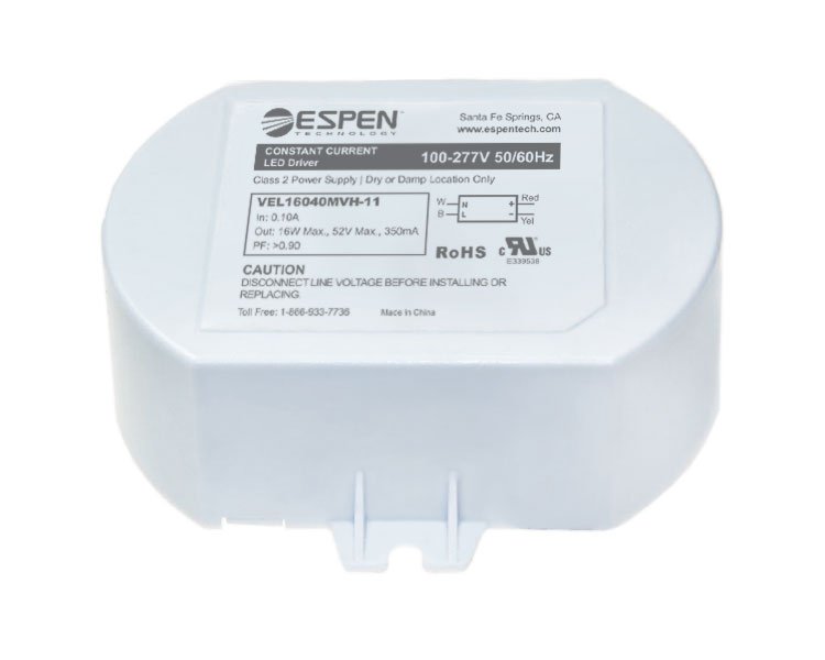 VEL30060MVHDA-10V-1 24W 120-277VAC-IN 28-40VDC-OUT 600MA CC LED DRIVER ESPEN TECHNOLOGY 0-10V DIMMABLE 50,000HRS L 4.65" W 1.22" H 1.18" |