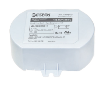 VEL12045120HDA-3 12W 120V-IN 22-28V-OUT 450MA CC LED DRIVER TRIARC PHASE DIMMING IP20 ESPEN TECHNOLOGY |