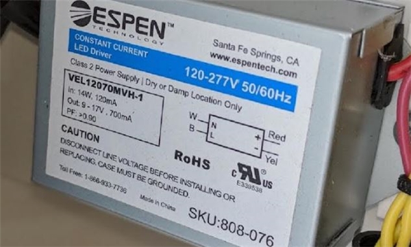VEL19090120HDA-1 CC 23W 15-21V-OUT ESPEN TECHNOLOGY 120V-IN 900MA DIMMABLE LED DRIVER |