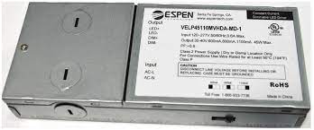 VEL60130MVHDA-10V-P-MD ESPEN 60W CC CONSTANT CURRENT LED DRIVER 120-277VAC-IN 30-45VDC-OUT 650MA 950MA 1300MA HIGH POWER FACTOR 0-10V DIMMING 1-CHANNEL |