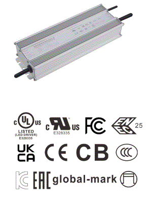 EUM-320S150MT 320W PROGRAMMABLE CC CONSTANT CURRENT LED DRIVER 90-305VAC-IN 107-305VDC-OUT 1050-1500mA DEFAULT 1400mA DIMMABLE 0-10V/ PWM/ 3-TIMER-MODES AUX: 12V 250mA 3W UL CLASS P 8.82"L 3.15"W 1.75"H |