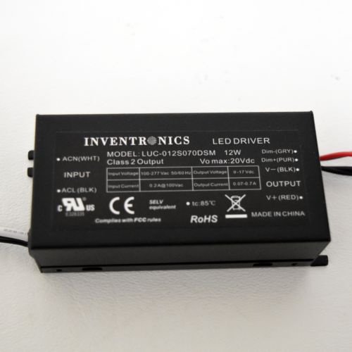 LUC-012S070DSP 12W LED DRIVER CONSTANT CURRENT CC 90-305VAC-IN 9-17VDC-OUT 700mA 12W MAX DIMMABLE 0-10V COMPATIBLE WITH PASSIVE DIMMERS IP20 RATED INDOOR USE ONLY |