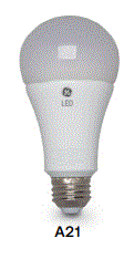 LED11A21/850 11W LED A21 FROSTED PLASTIC E26-MEDIUM SCREW BASE =75W 120V 5000K CRI>80 1050LM NON-DIM 10000HRS DAMP LOCATION RATED 4PK L 5.20" D 2.65" |