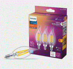 5BA11/PER/UD/CL/G/E26/WGD-6/3PF-T20 5W CLEAR GLASS B11 FILAMENT LED E26-MEDIUM SCREW BASE 120V =60W 2200-2700K WARM GLOW CRI-95 500LM 15000HR WET LOCATION RATED T20/COMPLIANT 3-PACK L 3.94" D 1.38" |