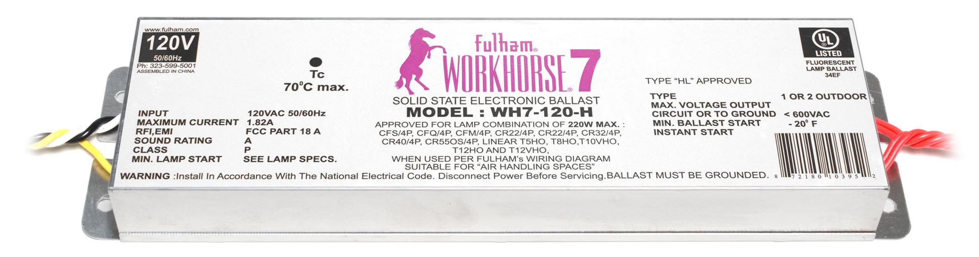 WH6-277-L 1L 2L 3L 4L ELEC BAL INSTANT S 277V WORKHORSE 6 LONG CASE |