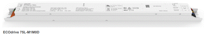 EC75L-M1M0A2-1600MA-LOG-16VAUX-ON 75W eldoLED LED DRIVER EC75L 100V-277VAC/IN 1600mA 2V-55VDC/OUT W/SIDE FEED, CLASS 2, PF:>0.90, 0- DIMMING TO 1%, (AUX: 4-24VDC) 16.7"L X 1.2"W X 1.06"H 0.9LBS EA |