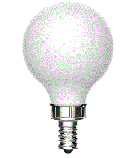 LED4DFG16C-W 4W G16.5 LED GLASS WHITE E12-CANDELABRA =40W 120V 2700K CRI-80 350LM 15000HRS DAMP LOCATION RATED L 3.40" |
