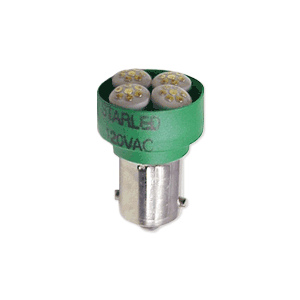 MB44SF-G-120V-DP GREEN(520-530NM) LED 120V T3.25 MB - BA9S 100,000HRS 1.050"MOL 0.575"DIA |