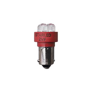 MB44SF-R-24V-DP LED T3-1/4 ULTRA HI EFF RED 623-630nm BA9S - MINIATURE BAYONET BASE 24V DP-DUAL POLARITY AC/DC 1.05"L X 0.58"D |