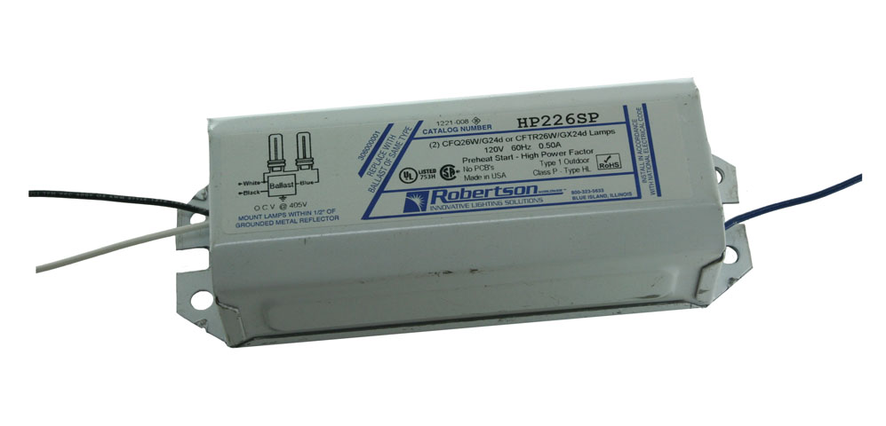 R-HP2627P-VERSION-4 1L 26W 2P CF 277V BOTTOM LEADS W/ STUDS HIGH POWER PRE HEAT MAG BAL 1.50 LB EA |