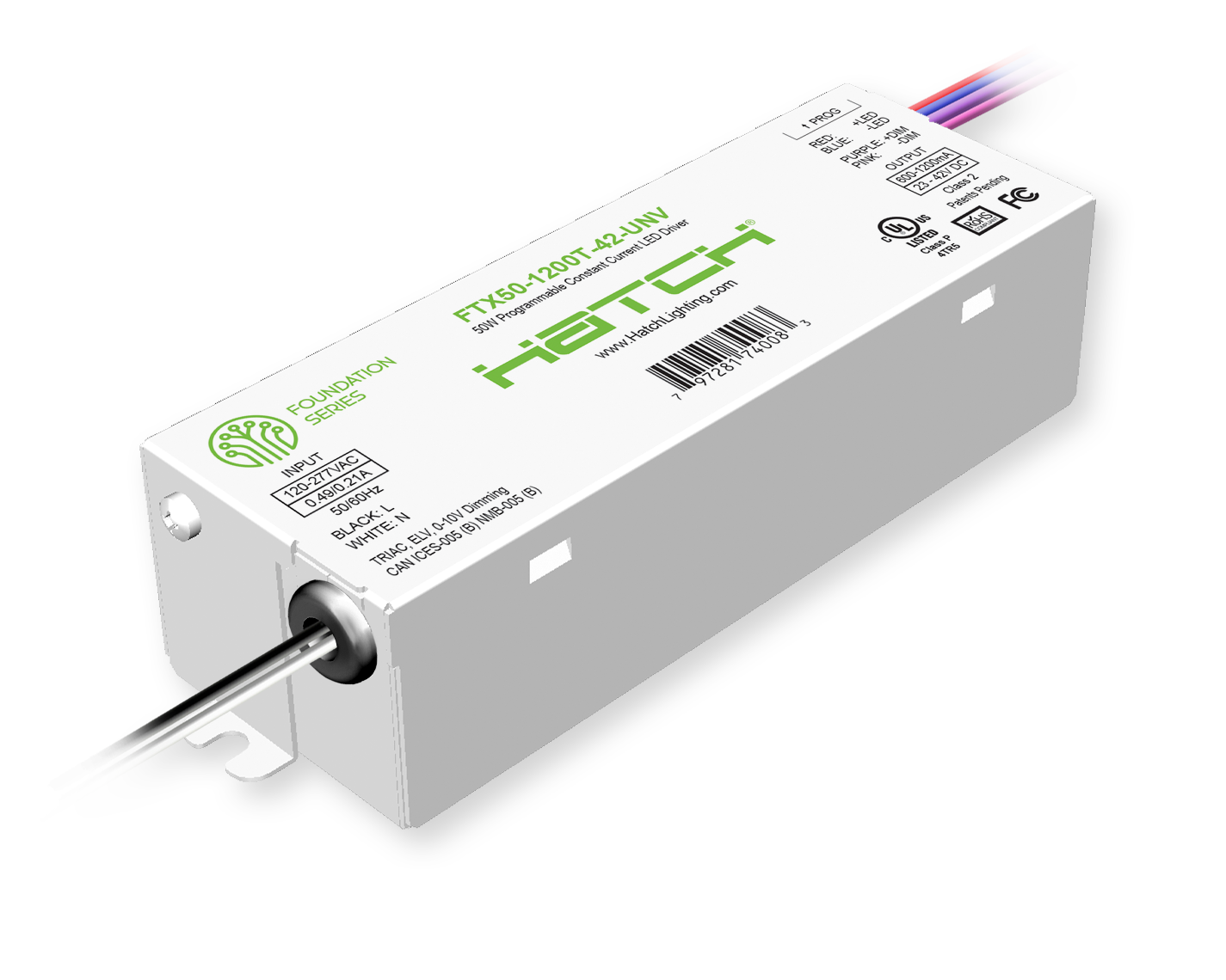 FTX50-1200T-42-UNV 50W PROGRAMMABLE LED DRIVER CONSTANT CURRENT CC 120-277VAC-IN 23-42VDC-OUT 1200mA DEFAULT 600mA-1200mA RANGE DIMMABLE TRIAC/LEADING ELV/TRAILINGEDGE 0-10V SIDE LEAD EXIT ***IN HOUSE CUSTOM PROGRAMMING*** DRY/DAMP L 4.98" W 1.61" H 1.10" |