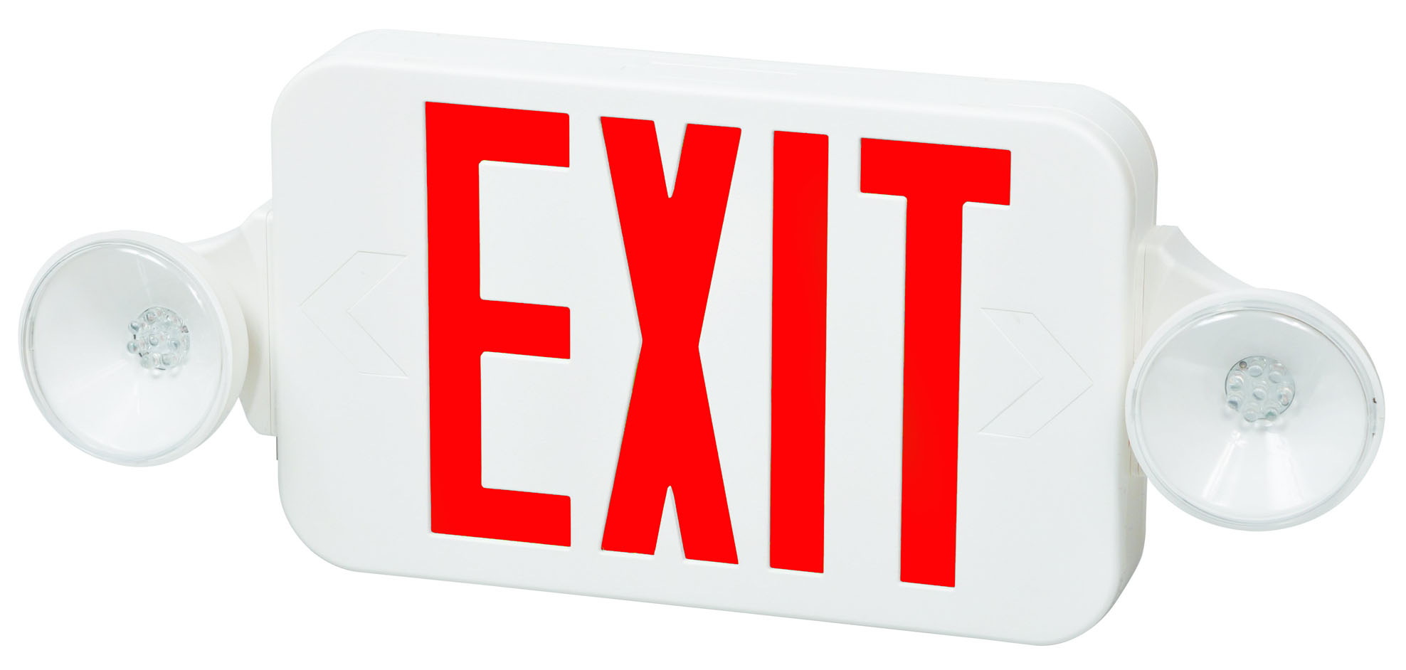 FHEC35RRC FIREHORSE EXIT AND EMERGENCY LIGHT COMBO THIN LED WITH LED HEADS WHITE HOUSING RED LETTERS REMOTE CAPABLE **CHECK W/VENDOR FOR MOQ STATUS** |