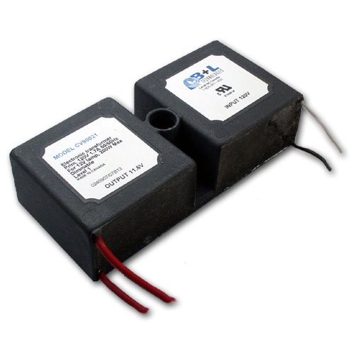 B+L-CV90010 105W DIMMABLE 120VAC TO 12VAC ELECTRONIC TRANSFORMER HOLE IN MIDDLE PLASTIC CASE 4.25"L X 2.0"W X 1.13"H 0.62 LB EA |