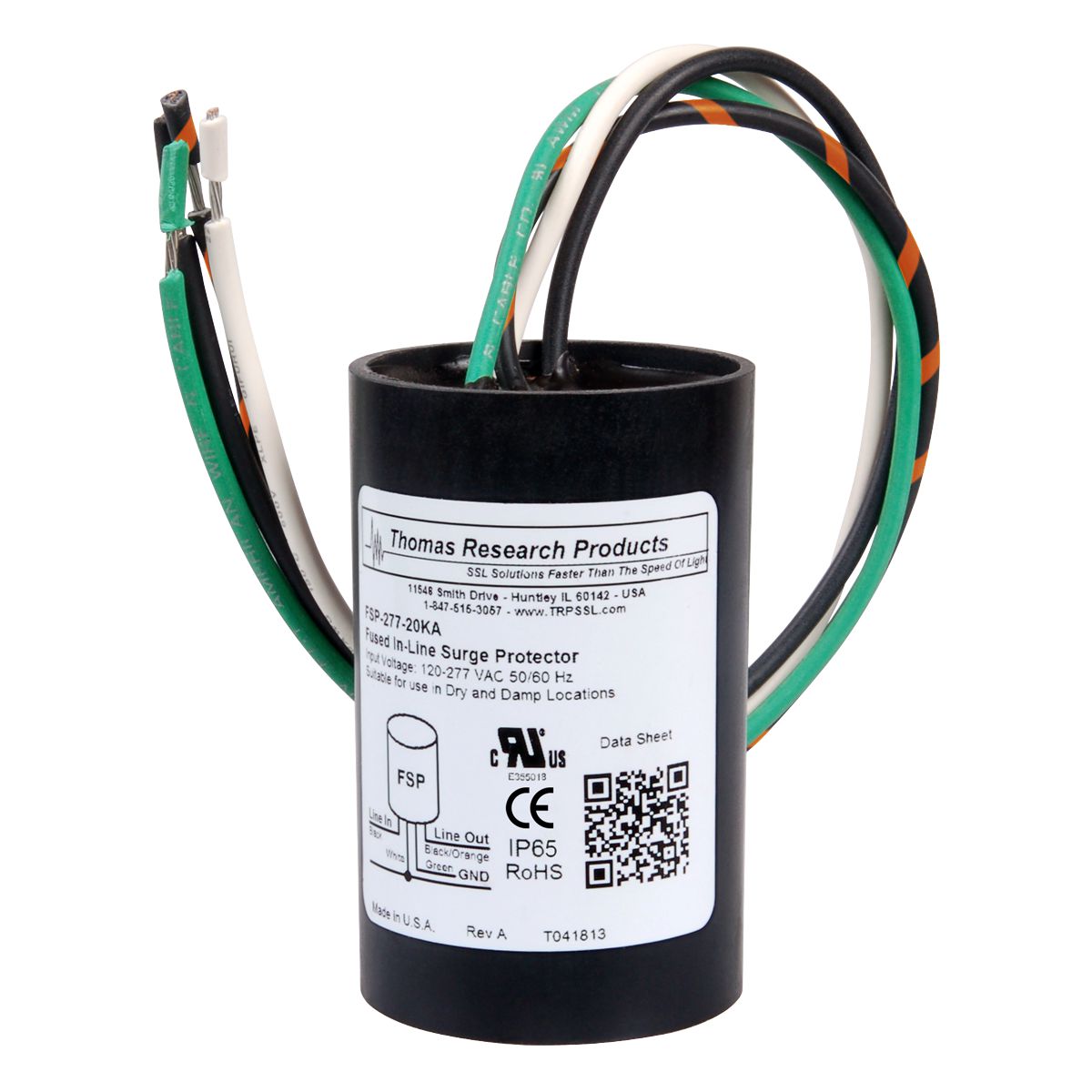 FSP3-277-20KA-NI-C01 277VAC MAIN OR 120V THROUGH 277V UNIVERSAL INPUT FSP3 SERIES 3 POLE FUSED IN-LINE SURGE PROTECTOR FOR LED DRIVERS WITH 20KA PROTECTION 7.0A/7000MA CONTINUOUS MAX CURRENT 320VAC/420VDC OPERATING VOLTAGE 10KA-IN NOMINAL CURRENT 2100V MAX CLAMPING VOLTAGE @ 20KA IP65 UL1449 COMPLIANT 2.95" H 1.89" DIA |