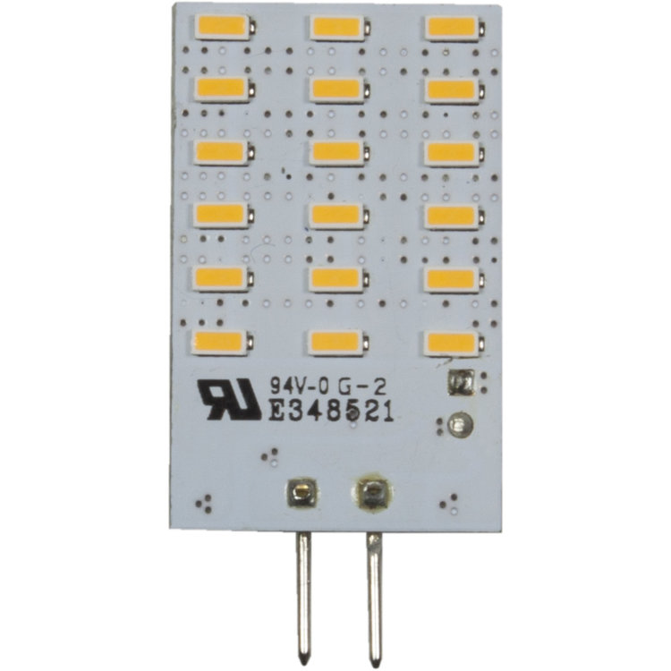 BIPIN-G4-RND-WAFER 2W 120LM BRILLIANCE LED WAFER G4 2700K 85CRI 180DEG 8-18VAC/DC 35000HR DIMMABLE WITH MOST MAGNETIC TRANSFORMERS IP60 5YR WARRANTY =25W DRY LOCATION RATED FOR LANDSCAPE LIGHTING IP60 1.28"MOL 1.4"DIA |