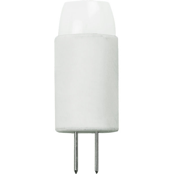 BRI-BIPIN-MICRO-G4-3000 1.2W 100LM BRILLIANCE LED T5 G4 3000K 85CRI OMNIDIRECTIONAL FROSTED 12VAC/DC 35000HR DIMMABLE WITH MOST MAGNETIC TRANSFORMERS IP65 3YR WARRANTY =10W DAMP/WET LOCATION RATED FOR LANDSCAPE LIGHTING 10-14V 1.3"MOL 0.47"DIA |