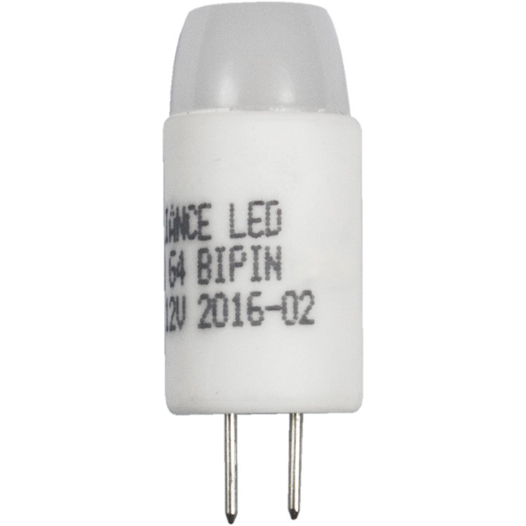 BRI-BIPIN-MICRO-G4-2700 1.2W 100LM BRILLIANCE LED T5 G4 2700K 85CRI OMNIDIRECTIONAL FROSTED 12VAC/DC 35000HR DIMMABLE WITH MOST MAGNETIC TRANSFORMERS IP65 3YR WARRANTY =10W DAMP/WET LOCATION RATED FOR LANDSCAPE LIGHTING 10-14V |