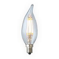 LTCA10C20024CB 2W CA10 FLAME TIP LED =25W 2400K 83CRI FILAMENT STYLE E12 CANDELABRA BASE 120V 200L CLEAR GLASS WET LOCATION RATED 4"MOL 25,000HRS |